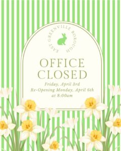 East Greenville Borough Office will be closed on Friday, April 3rd, re-opening on Monday, April