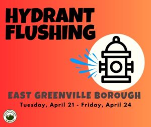 The Water Department will be flushing fire hydrants on Tuesday, April 21-Friday, April 24. This